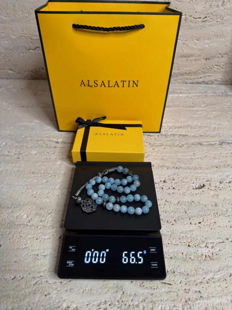 يفضل تجنب غمر السبحة بالماء لفترات طويلة للحفاظ على جودة الحجر والفضة.