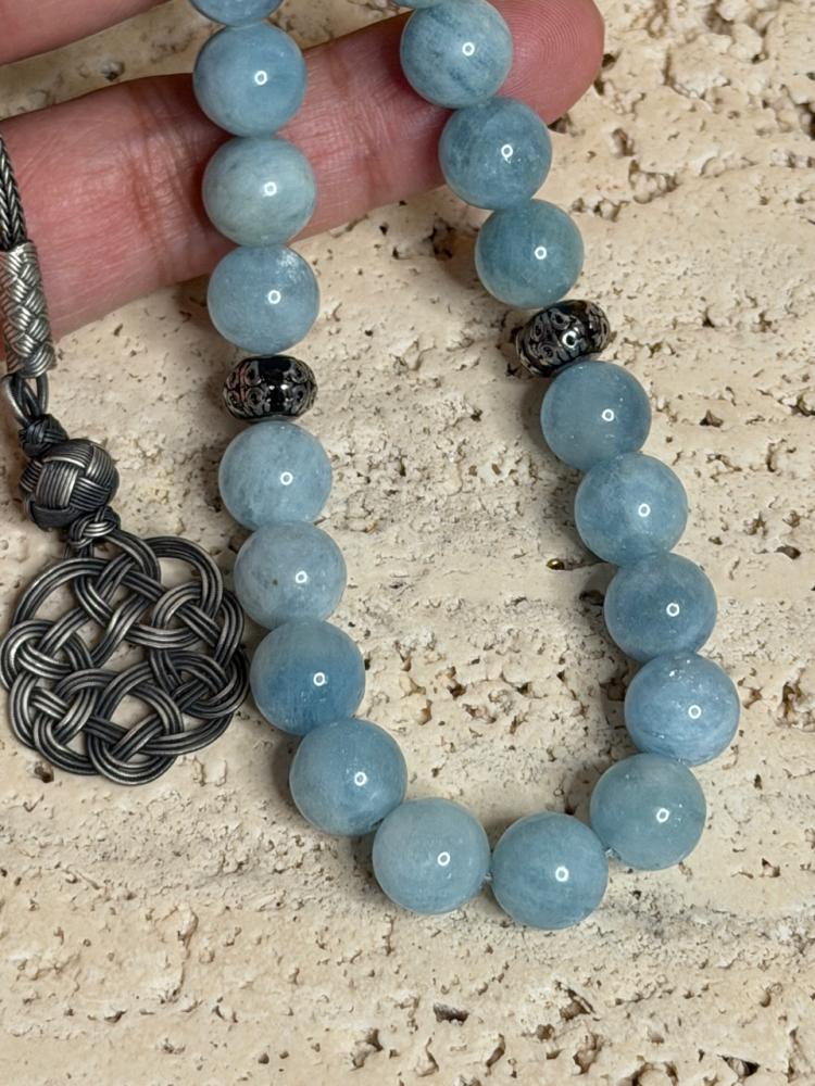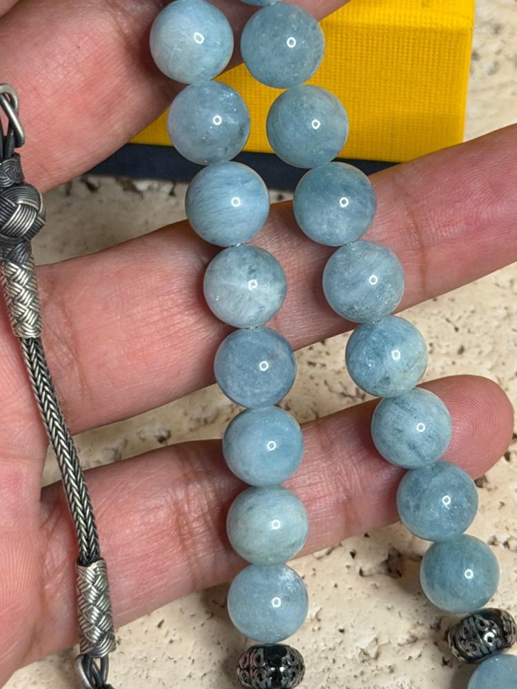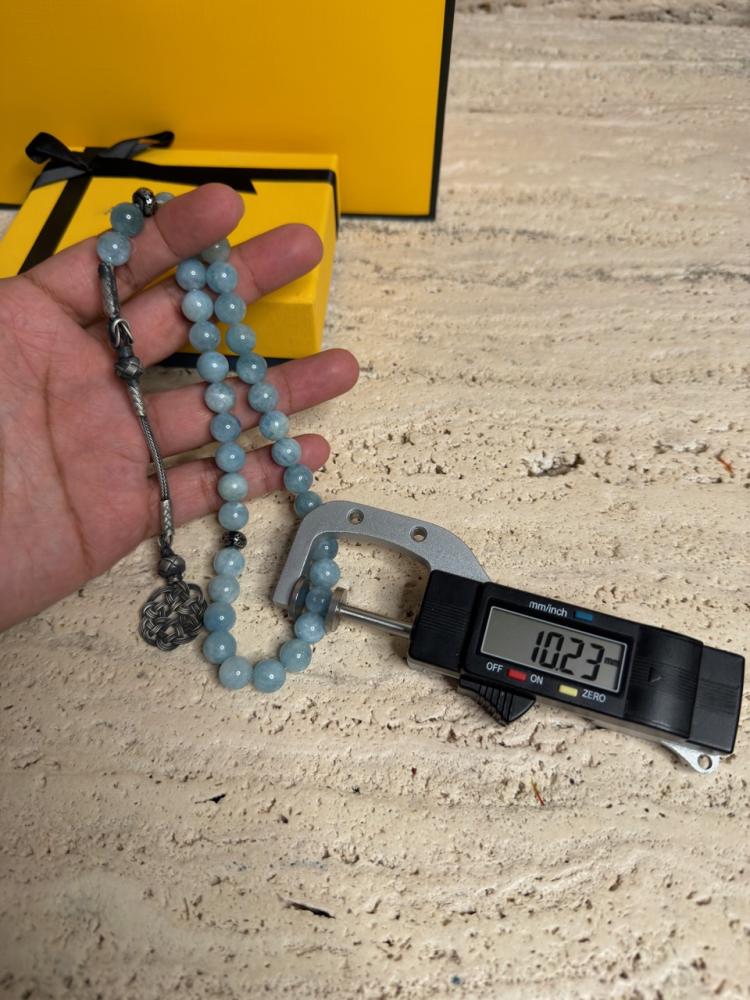 - حجم الحبة : يتراوح حجم الحبة فى سبحة اكوامارين بين 10.16-10.30ملي