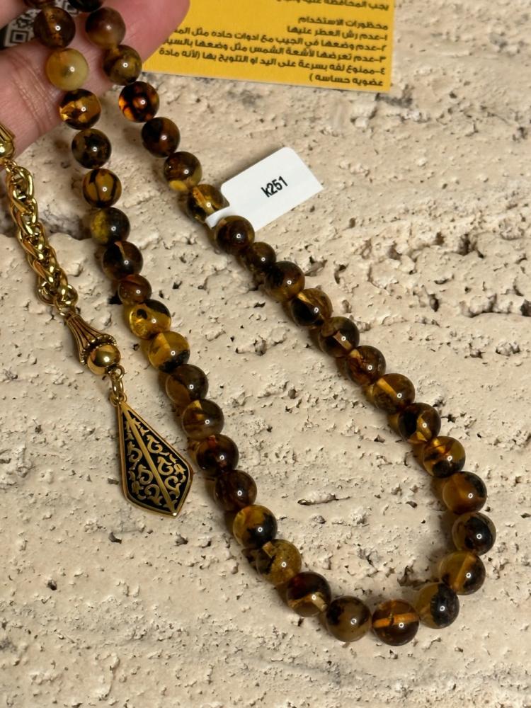 سبحة كهرمان حر شوائب طبيعية مذهب مع شكة ذهبي