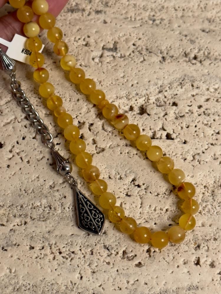 سبحه كهرمان حر شوائب طبيعية مع شكة استنلس استيل نفس المستخدم في الساعات الفاخرة