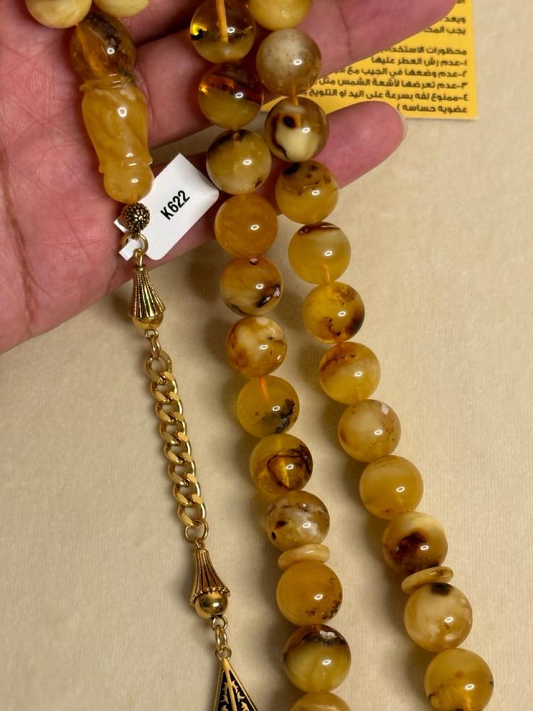 بعض الخرز او الشاهد قد يكون فيه شوائب ملموسه وهذا طبيعة الكهرمان الشوائب الطبيعية
