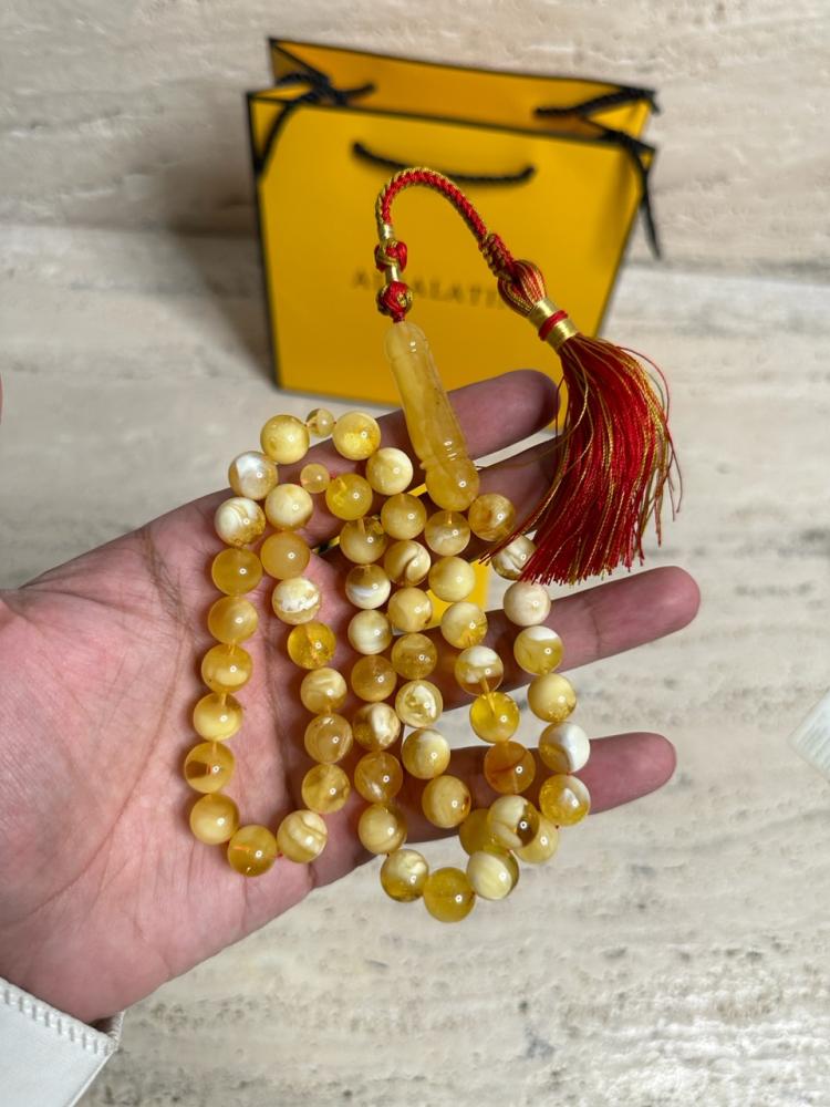 سبحه كهرمان حر شوائب طبيعية مع بياض