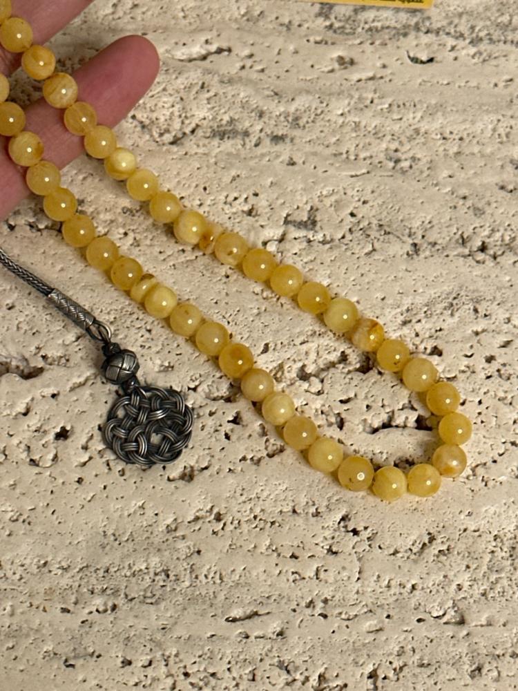 سبحه كهرمان حر شوائب طبيعية مع طربزونة فضة عيار 1000
