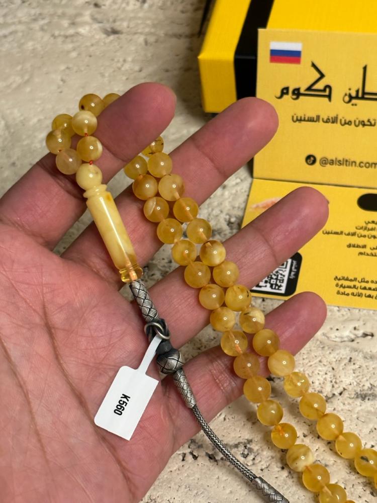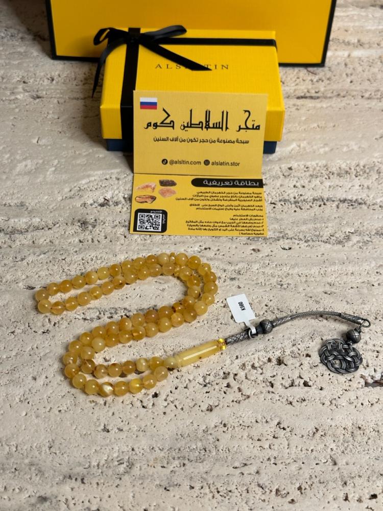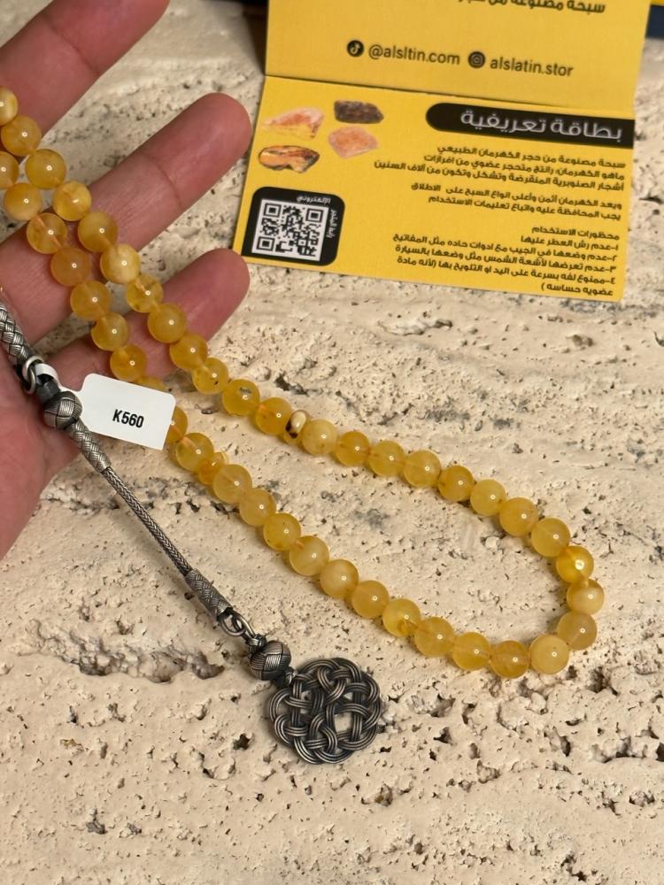 الكهرمان حجر عضوي ومن ميزته انه يكون خفيف الوزن واخف من اي سبحة ممكن تشوفه وصوت الخرز رنان يشبه صوت القزاز