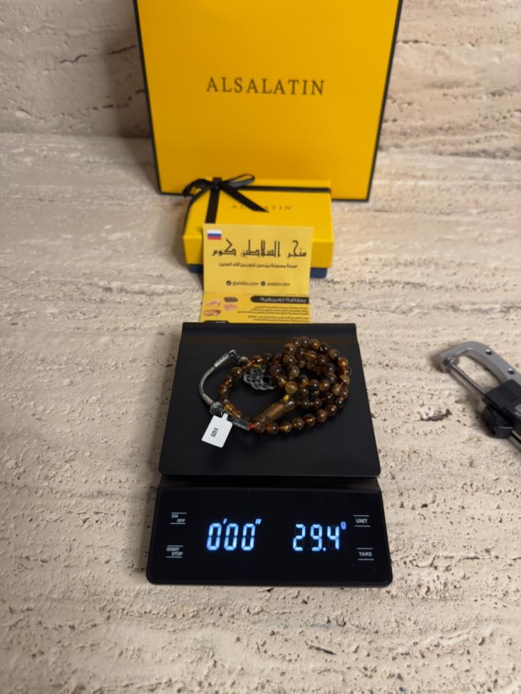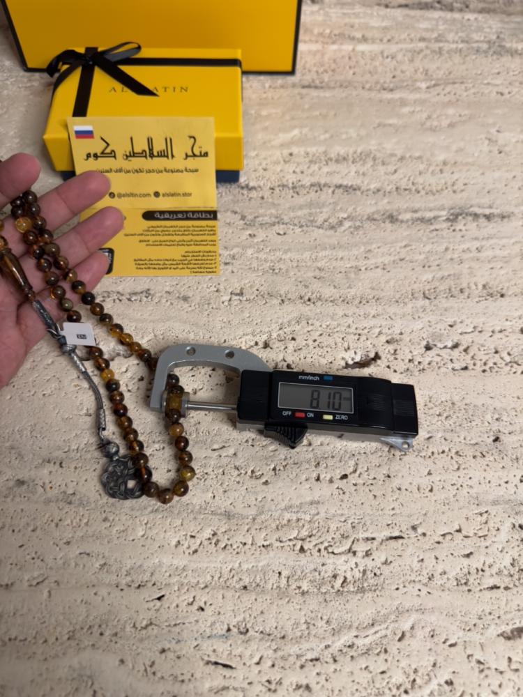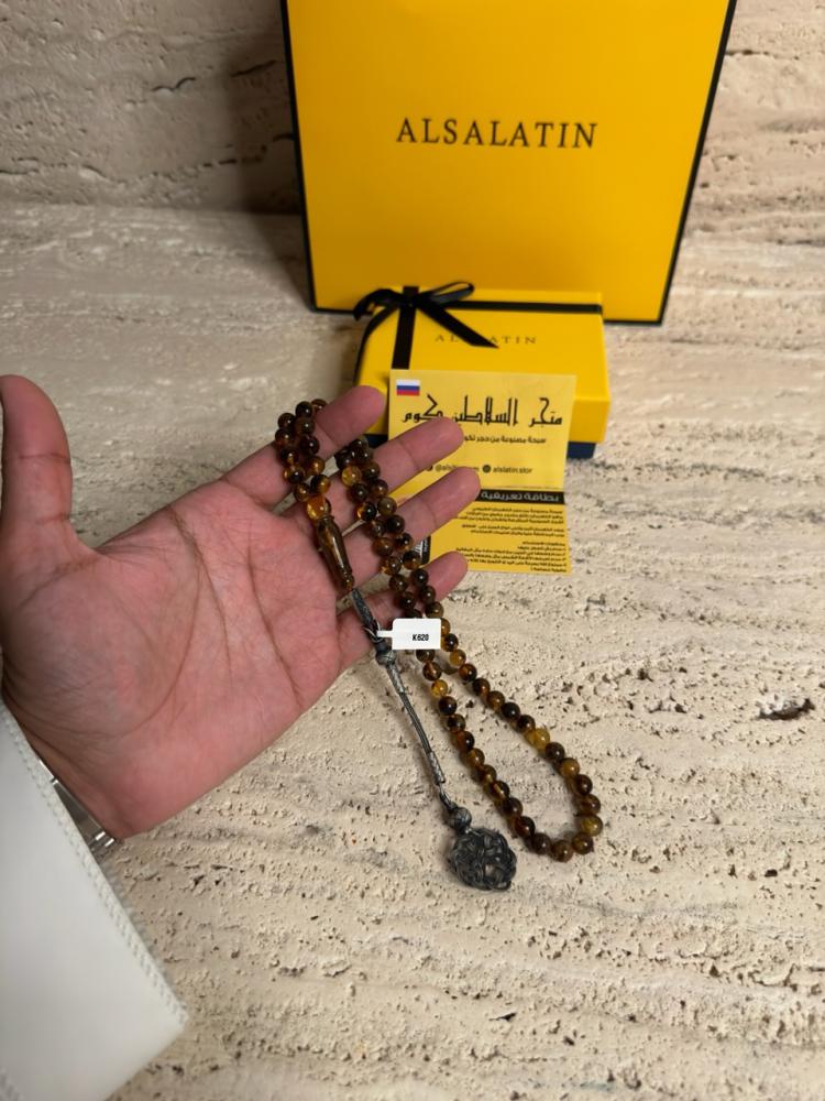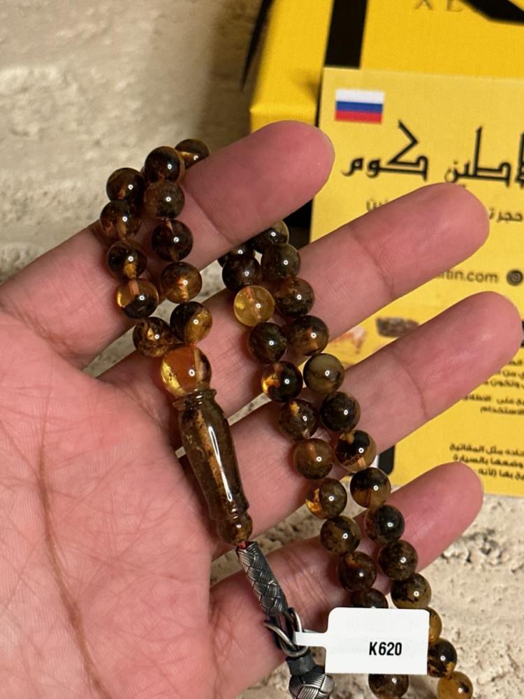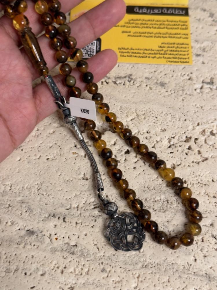 الكهرمان حجر عضوي ومن ميزته انه يكون خفيف الوزن واخف من اي سبحة ممكن تشوفه وصوت الخرز رنان يشبه صوت القزاز
