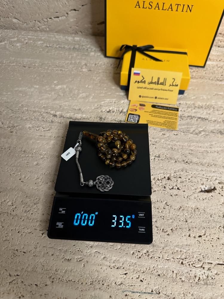 الكهرمان حجر عضوي ومن ميزته انه يكون خفيف الوزن واخف من اي سبحة ممكن تشوفه وصوت الخرز رنان يشبه صوت القزاز