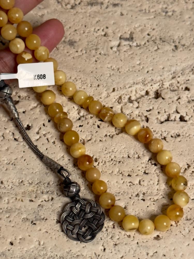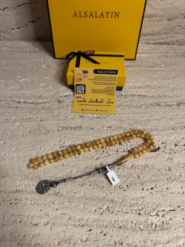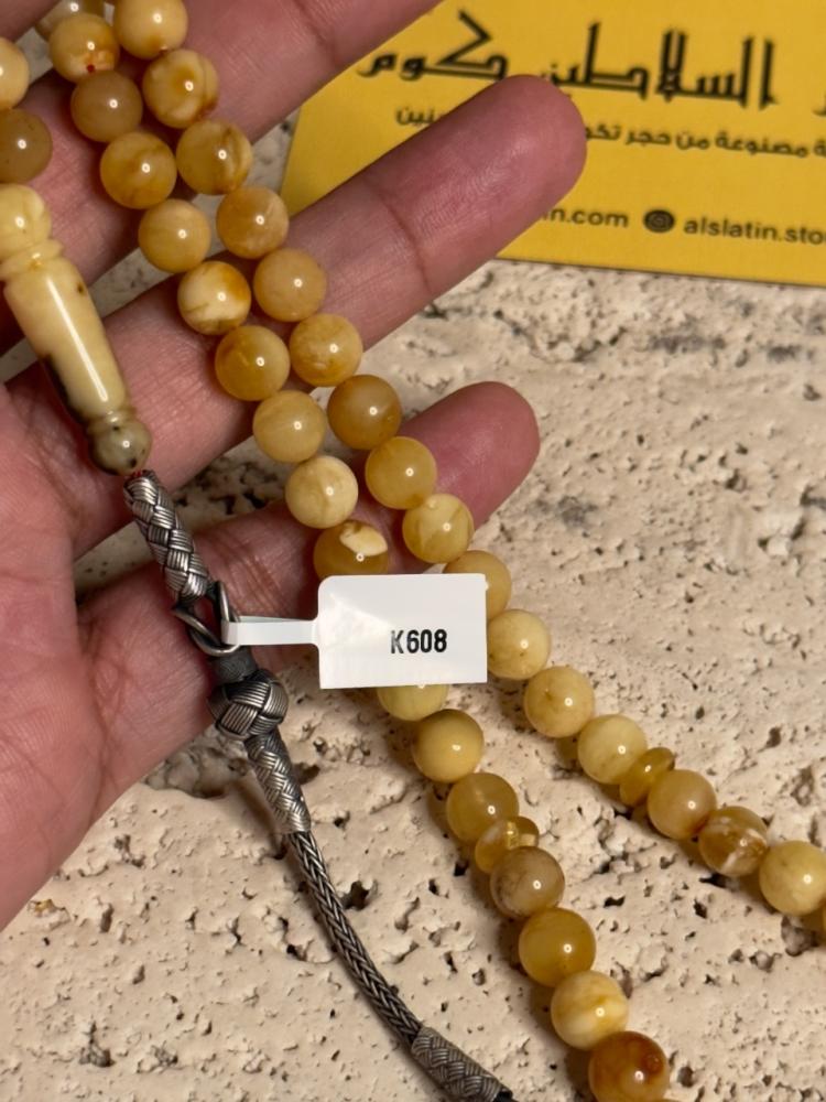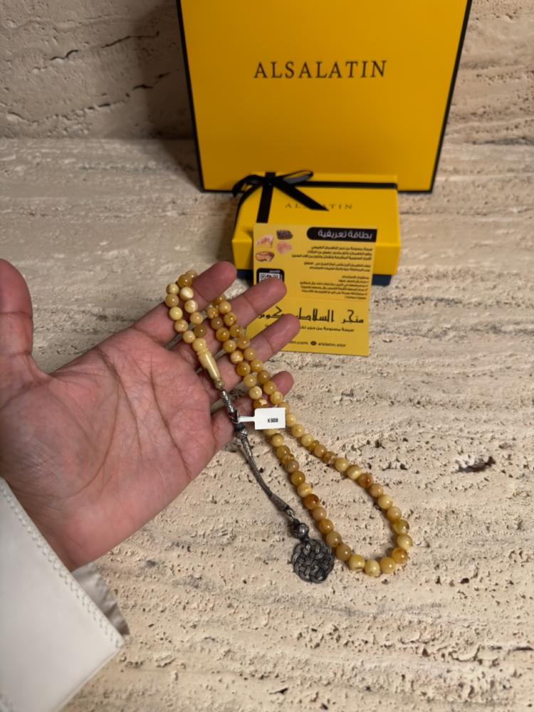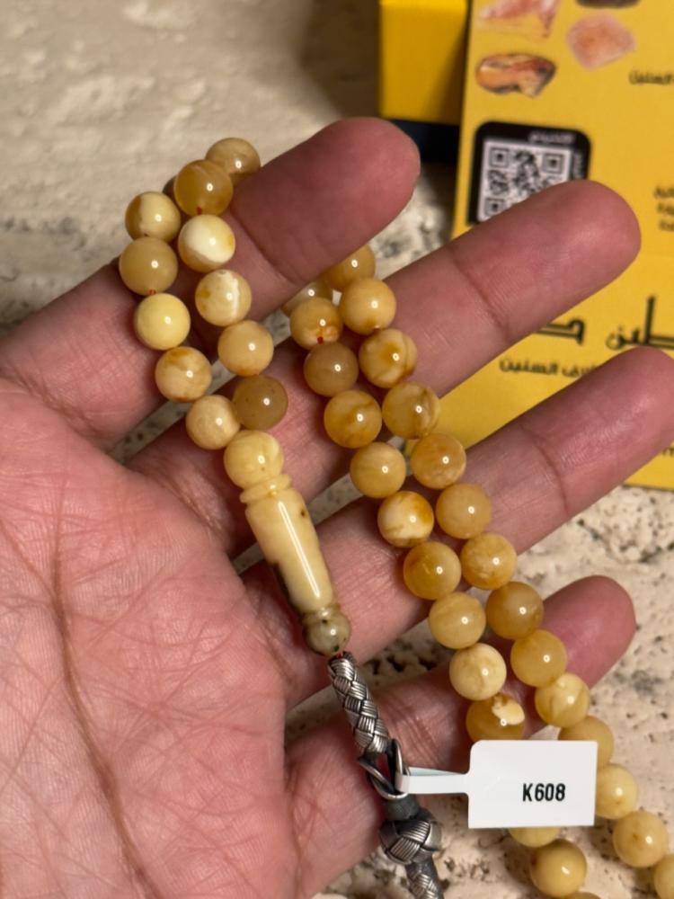 الكهرمان حجر عضوي ومن ميزته انه يكون خفيف الوزن واخف من اي سبحة ممكن تشوفه وصوت الخرز رنان يشبه صوت القزاز