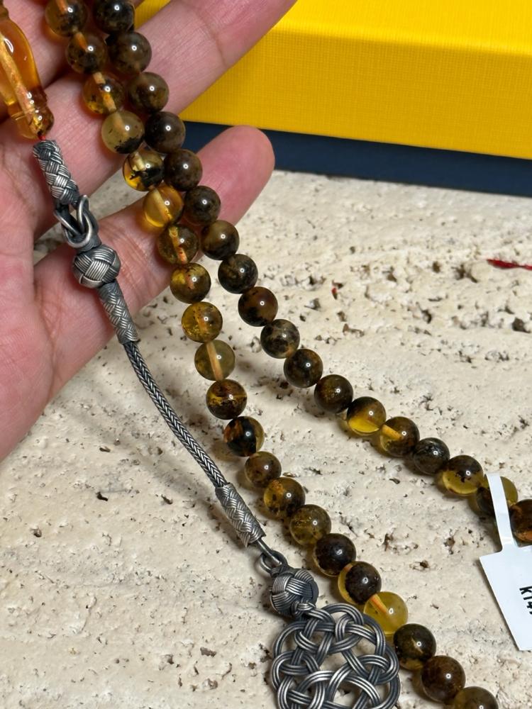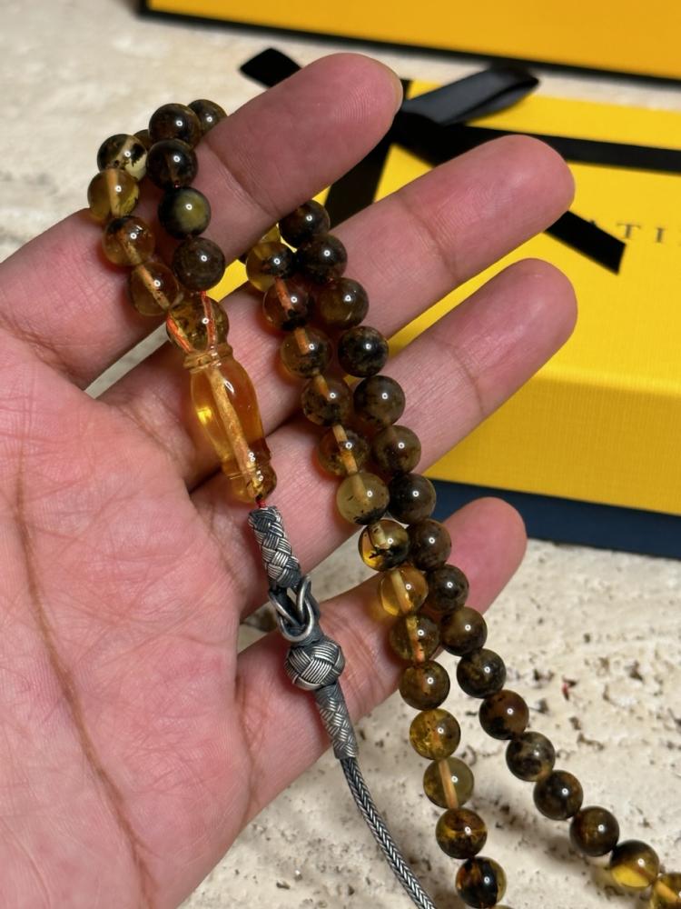 بعض الخرز او الشاهد قد يكون فيه شوائب ملموسه وهذا طبيعة الكهرمان الشوائب الطبيعية