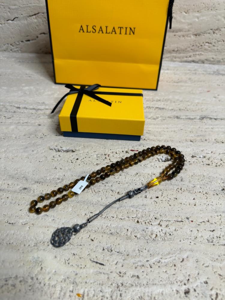 الكهرمان حجر عضوي ومن ميزته انه يكون خفيف الوزن واخف من اي سبحة ممكن تشوفه وصوت الخرز رنان يشبه صوت القزاز
