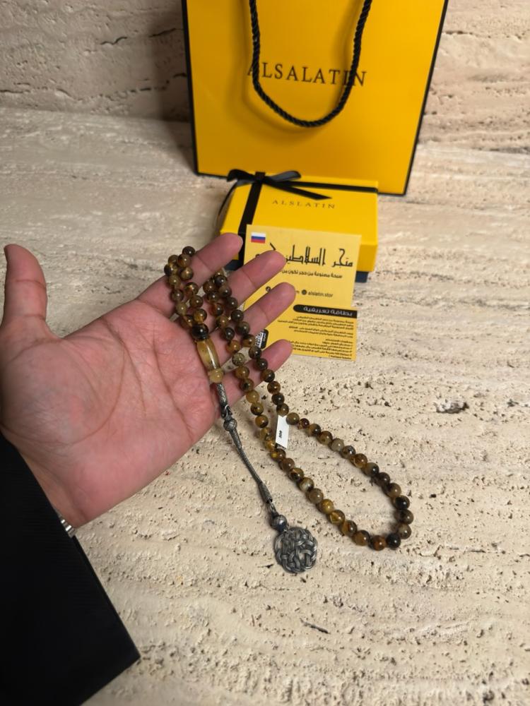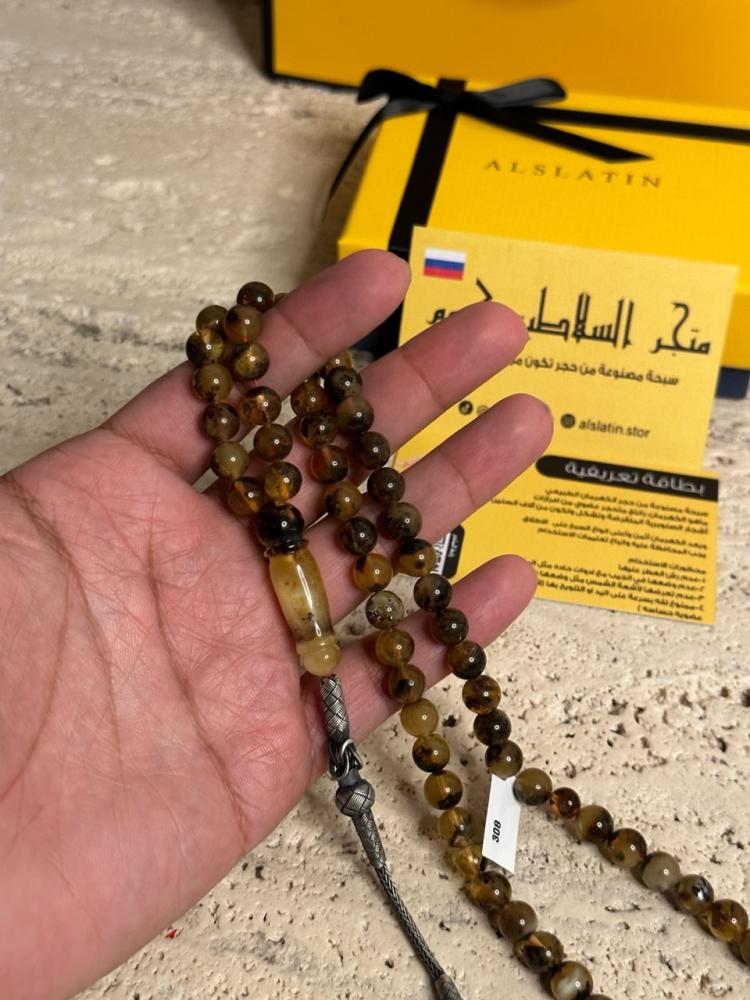 الكهرمان حجر عضوي ومن ميزته انه يكون خفيف الوزن واخف من اي سبحة ممكن تشوفه وصوت الخرز رنان يشبه صوت القزاز