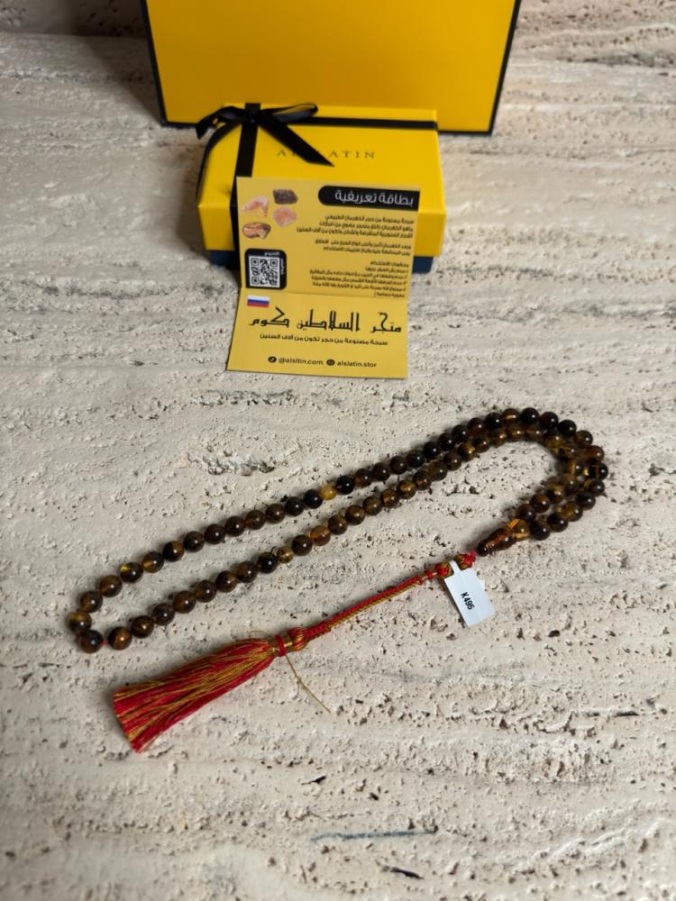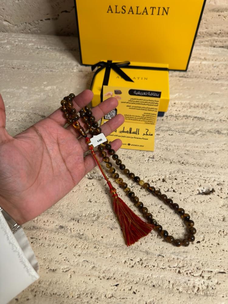 الكهرمان حجر عضوي ومن ميزته انه يكون خفيف الوزن واخف من اي سبحة ممكن تشوفه وصوت الخرز رنان يشبه صوت القزاز