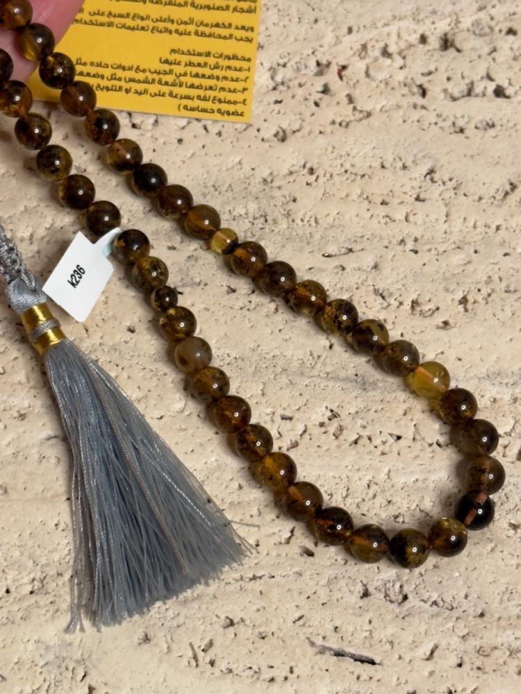 بعض الخرز او الشاهد قد يكون فيه شوائب ملموسه وهذا طبيعة الكهرمان الشوائب الطبيعية