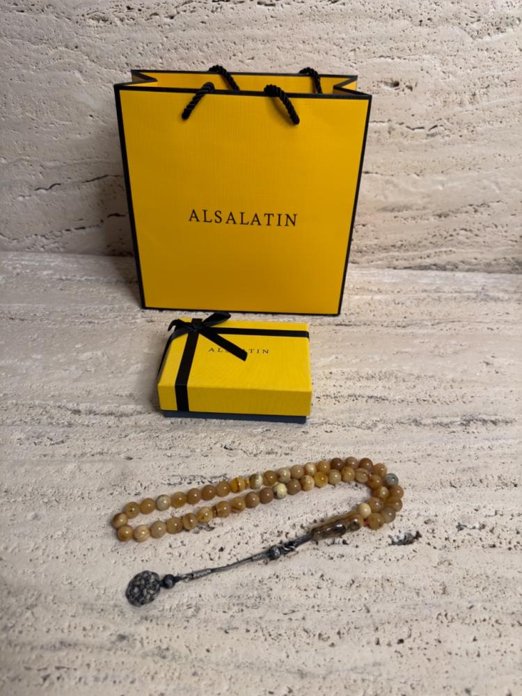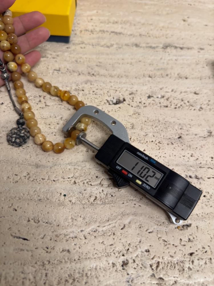 الكهرمان حجر عضوي ومن ميزته انه يكون خفيف الوزن واخف من اي سبحة ممكن تشوفه وصوت الخرز رنان يشبه صوت القزاز