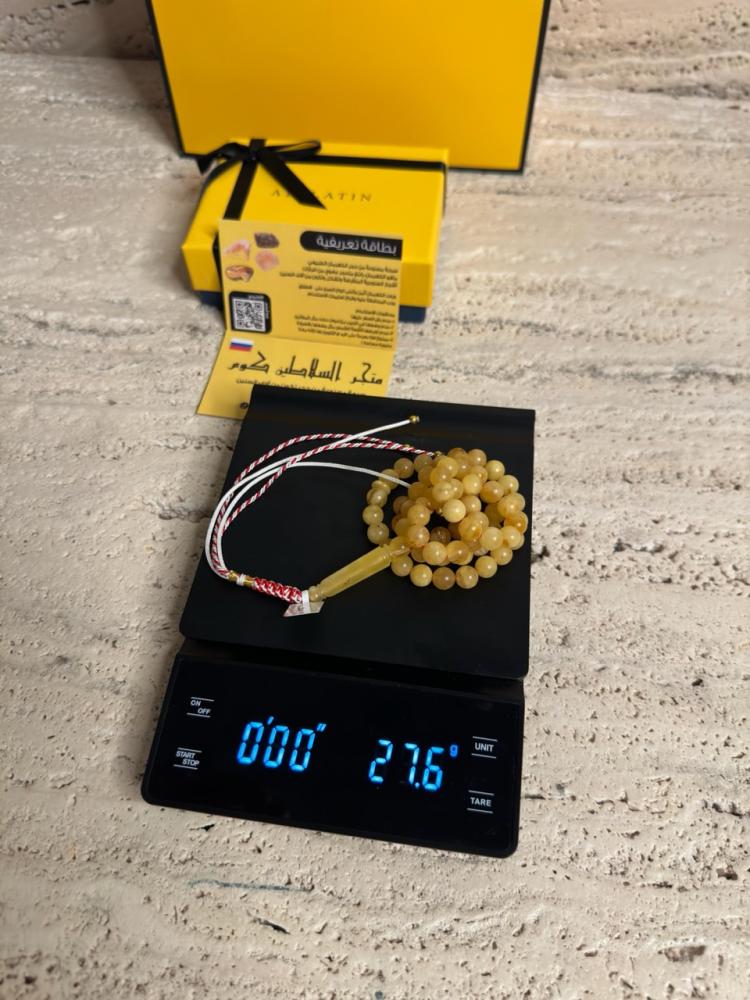الكهرمان حجر عضوي ومن ميزته انه يكون خفيف الوزن واخف من اي سبحة ممكن تشوفه وصوت الخرز رنان يشبه صوت القزاز