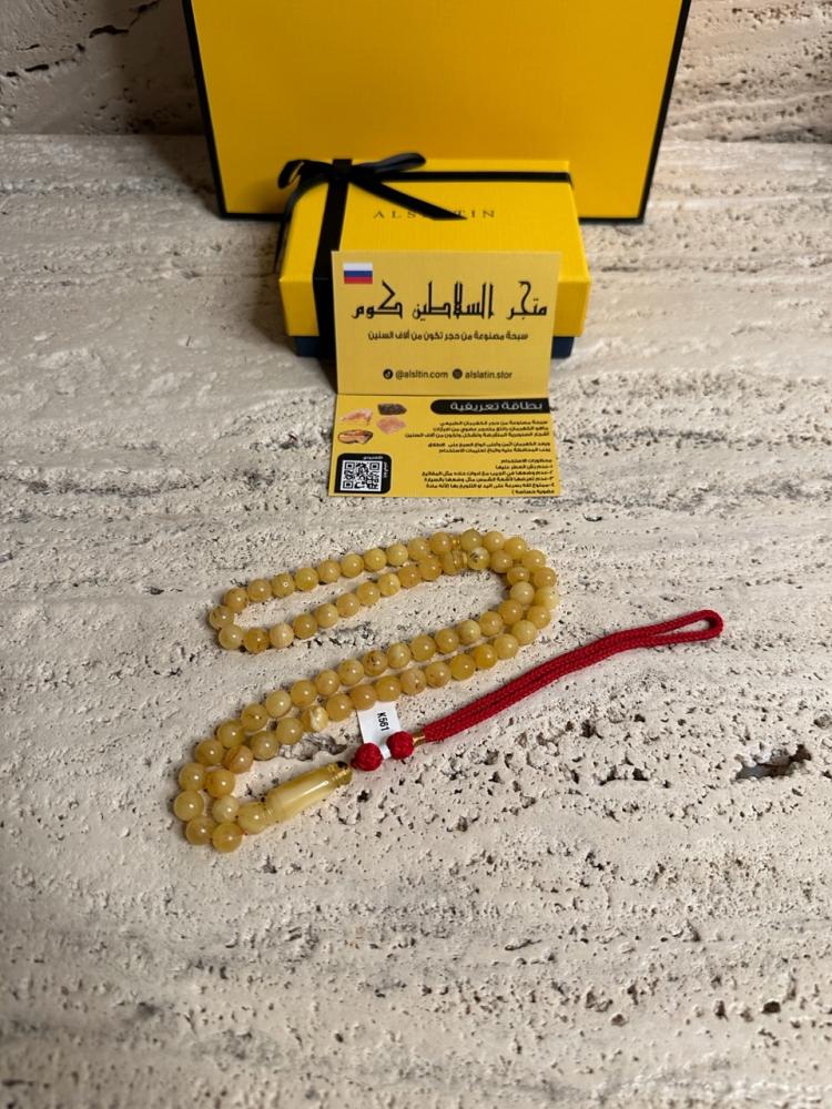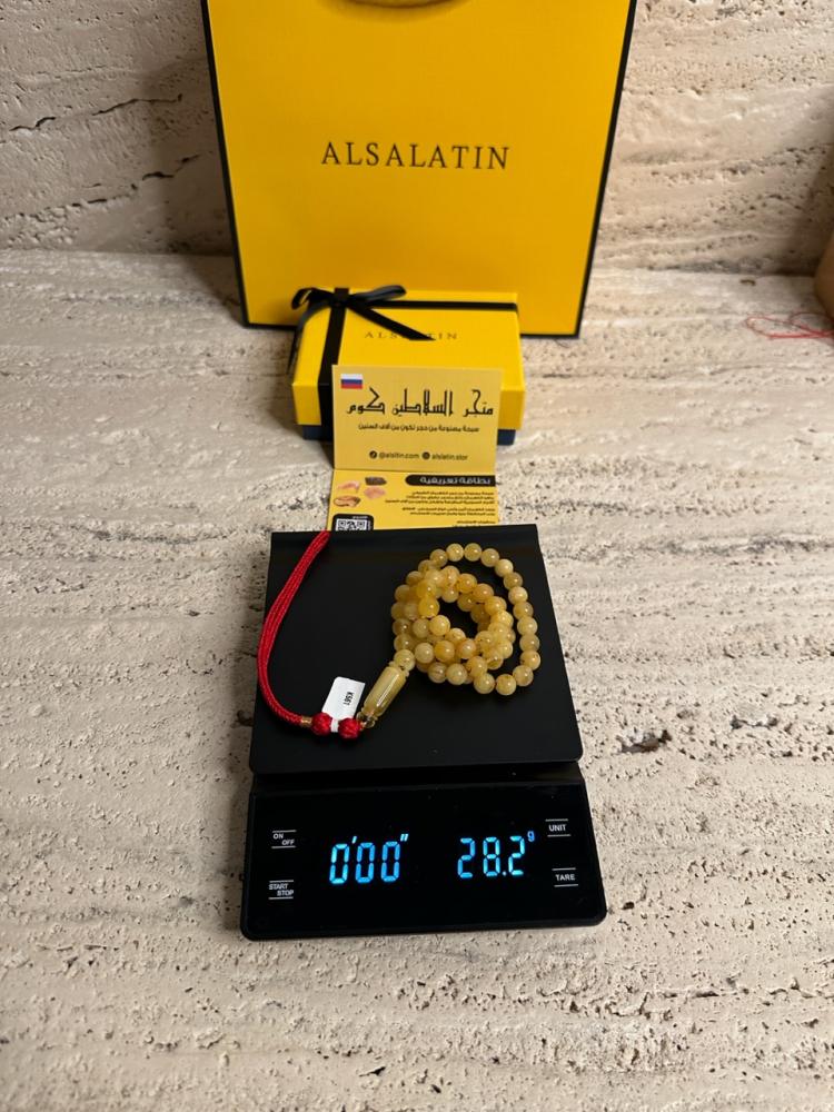الكهرمان حجر عضوي ومن ميزته انه يكون خفيف الوزن واخف من اي سبحة ممكن تشوفه وصوت الخرز رنان يشبه صوت القزاز