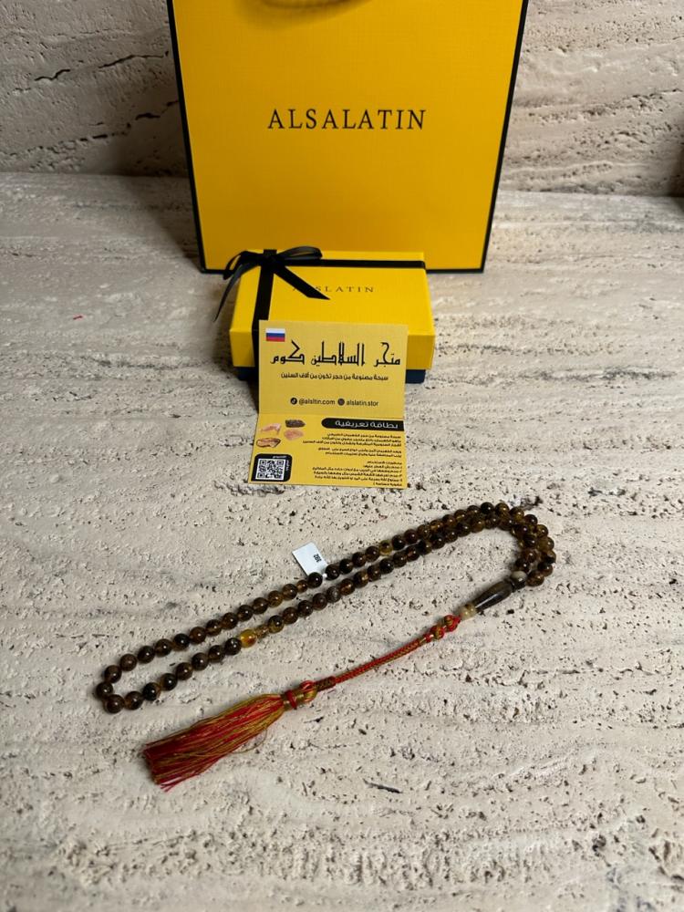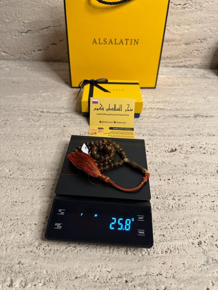 الكهرمان حجر عضوي ومن ميزته انه يكون خفيف الوزن واخف من اي سبحة ممكن تشوفه وصوت الخرز رنان يشبه صوت القزاز