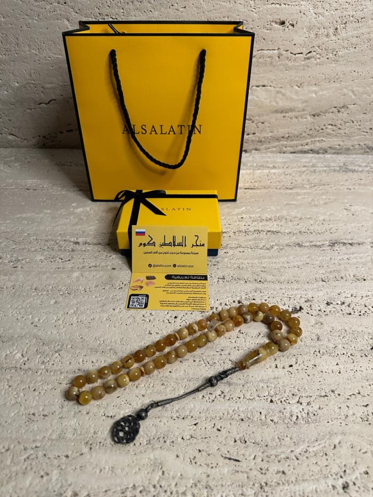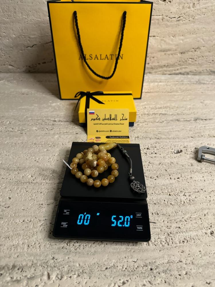 الكهرمان حجر عضوي ومن ميزته انه يكون خفيف الوزن واخف من اي سبحة ممكن تشوفه وصوت الخرز رنان يشبه صوت القزاز
