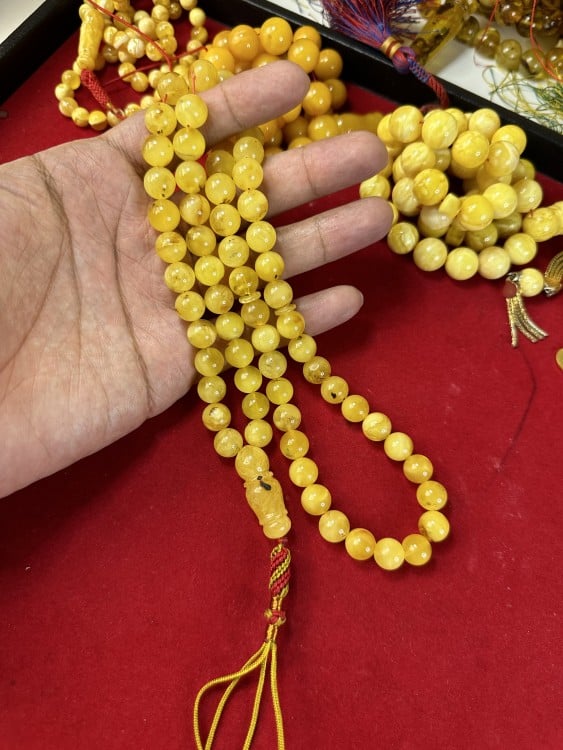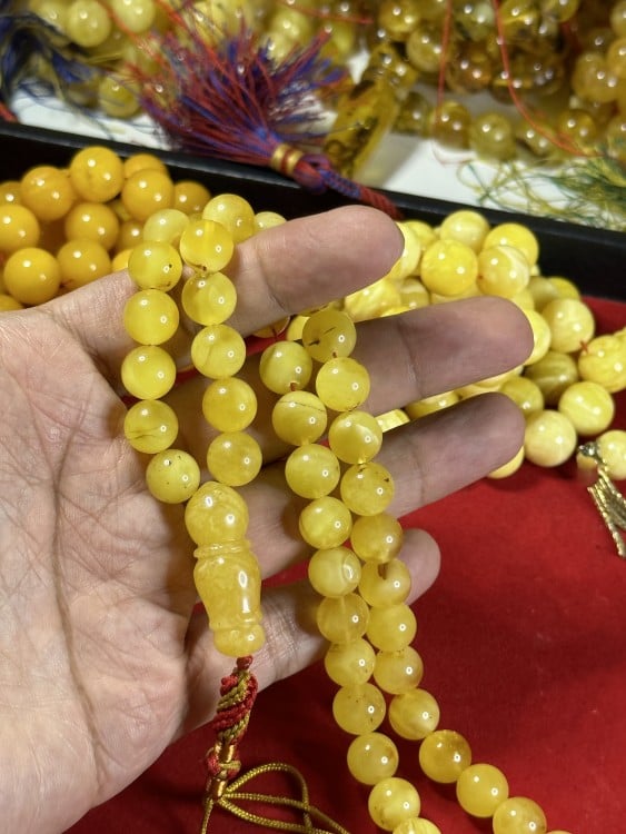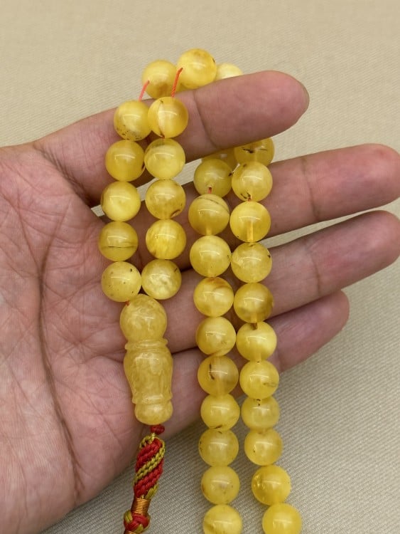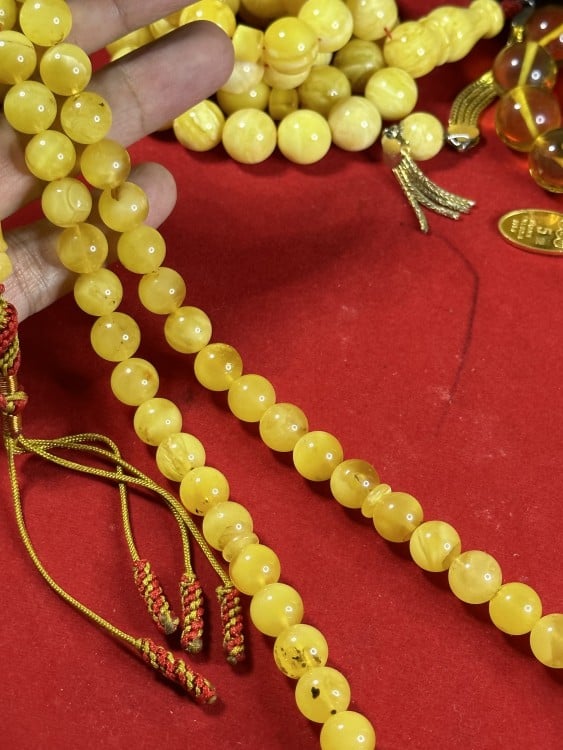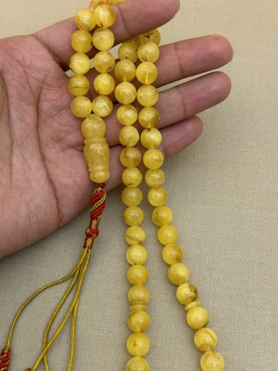 بعض الخرز او الشاهد قد يكون فيه شوائب ملموسه وهذا طبيعة الكهرمان الشوائب الطبيعية
