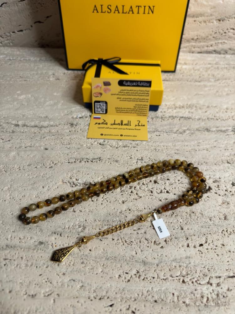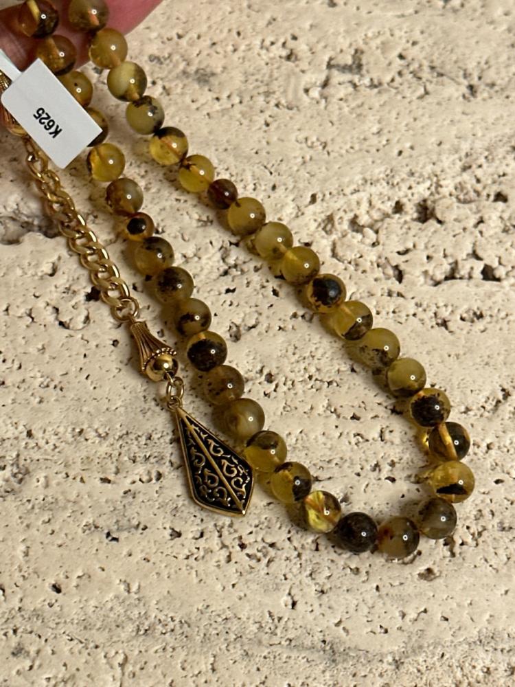 سبحه كهرمان حر شوائب طبيعية مع شكة استنلس استيل نفس المستخدمة في الساعات الفاخرة