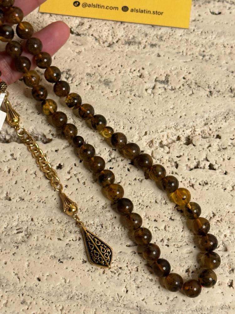 سبحه كهرمان حر شوائب طبيعية مع شكة استنلس استيل نفس المستخدمة في الساعات الفاخرة