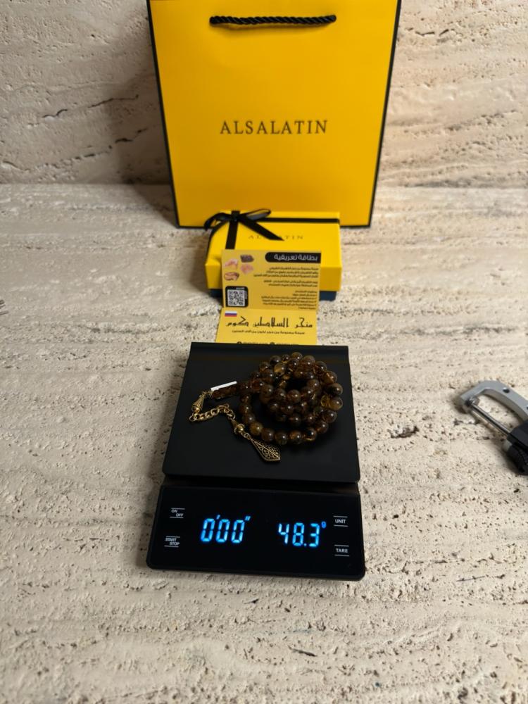 الكهرمان حجر عضوي ومن ميزته انه يكون خفيف الوزن واخف من اي سبحة ممكن تشوفه وصوت الخرز رنان يشبه صوت القزاز