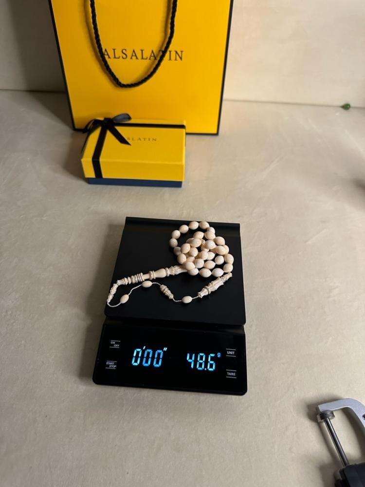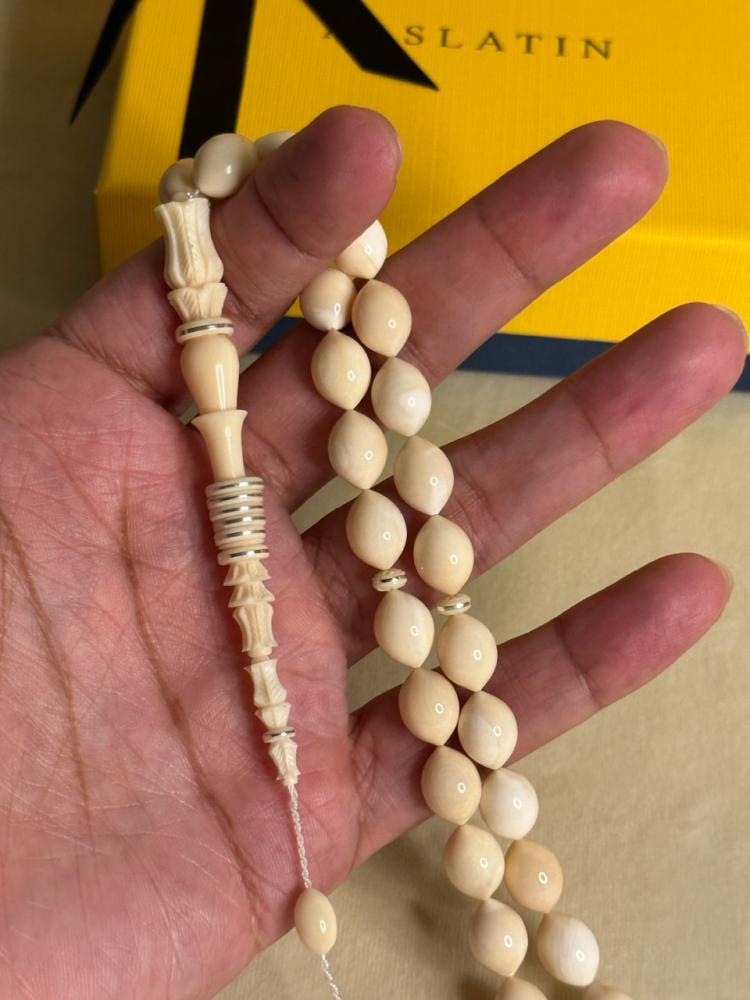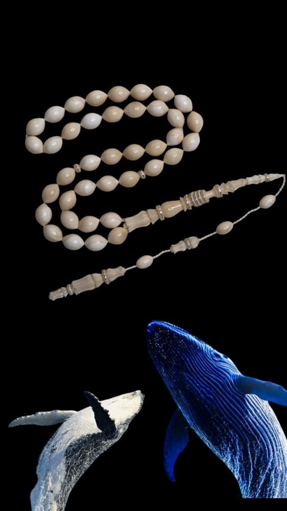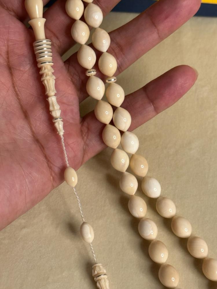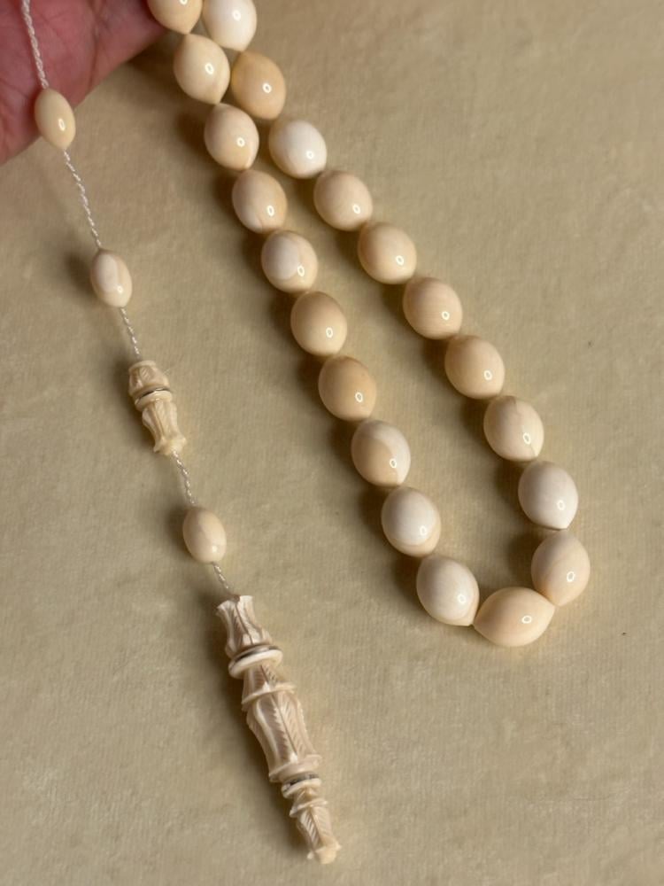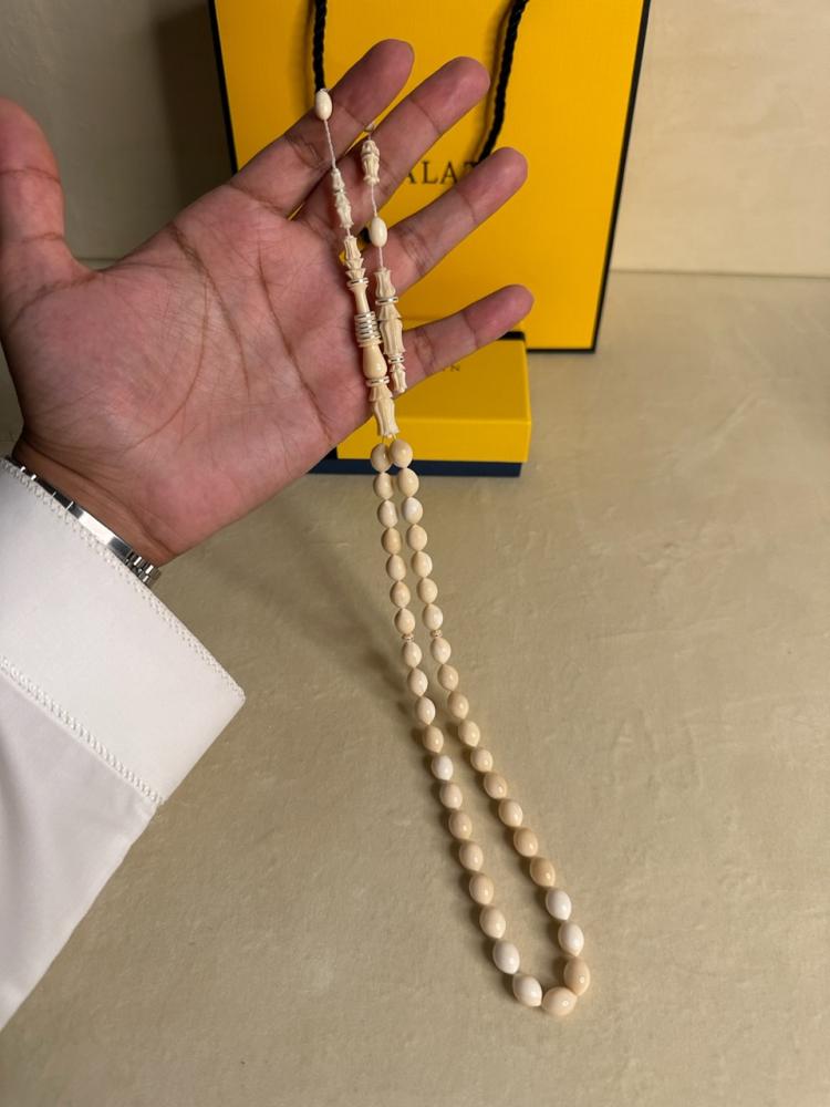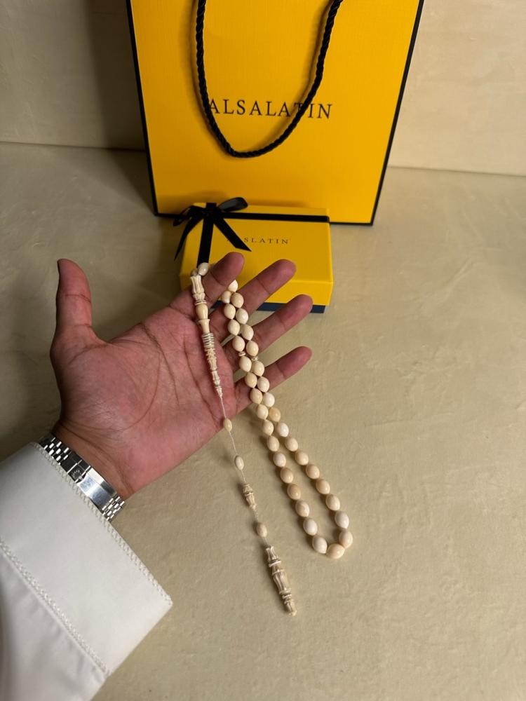 سبحة مصنوعه من عاج الحوت العنبر وهي اسنان الحوت وهو اكبر مخلوق في وجه الارض