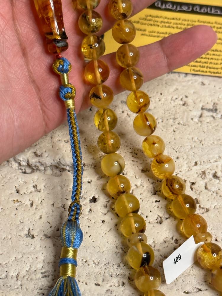 سبحه كهرمان حر حجم كبير شوائب طبيعية