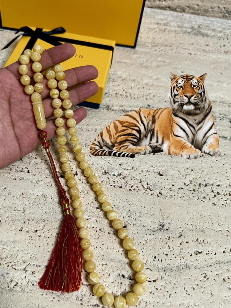 ليه سعر كهرمان التايقر يختلف عن سبح الكهرمان الثانيه والسبب ان نادر وبشرح لكم سبب الندرة ويتم فرزه من كميات كبيره من الكهرمان الشرح تشتري مجموعة سبح كهرمان ب ٦٠٠ الف ريال من الخامه المختلطه ويطلع لك في كل سبحة خرزتين الى ٣ مشخطين(تايقر) ف يتم قطع جميع السبح وفرز المشخط منها هذا السبب الاول والسبب الثاني انه جميل وفاخر وسبحان من كونه