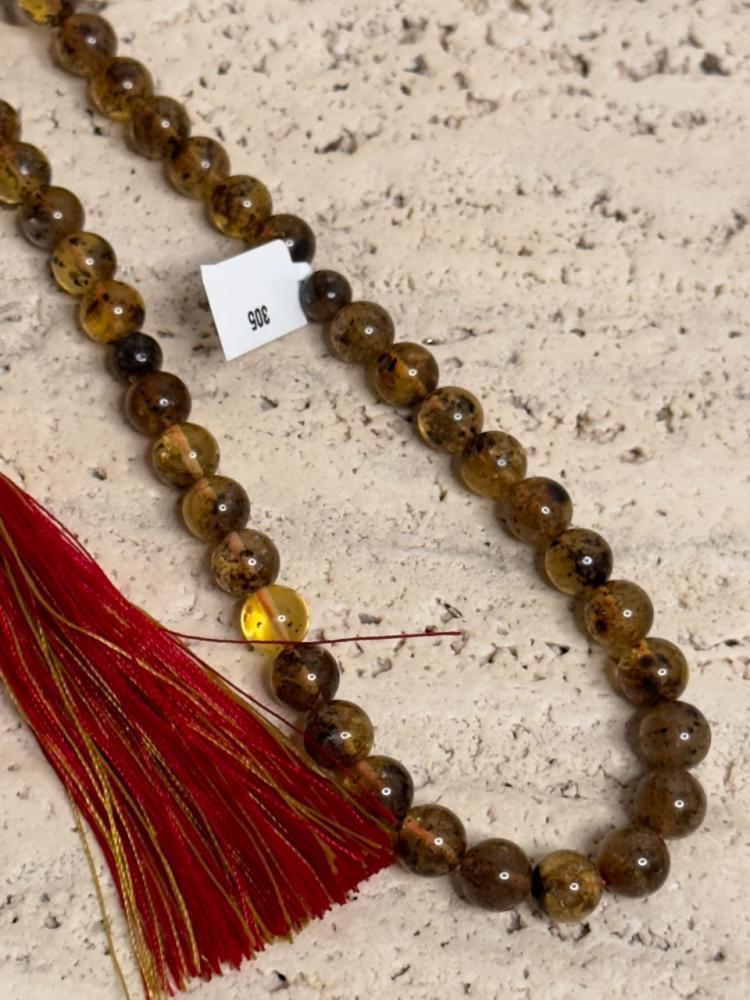 بعض الخرز او الشاهد قد يكون فيه شوائب ملموسه وهذا طبيعة الكهرمان الشوائب الطبيعية
