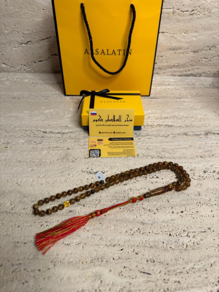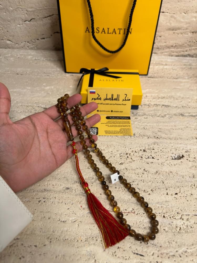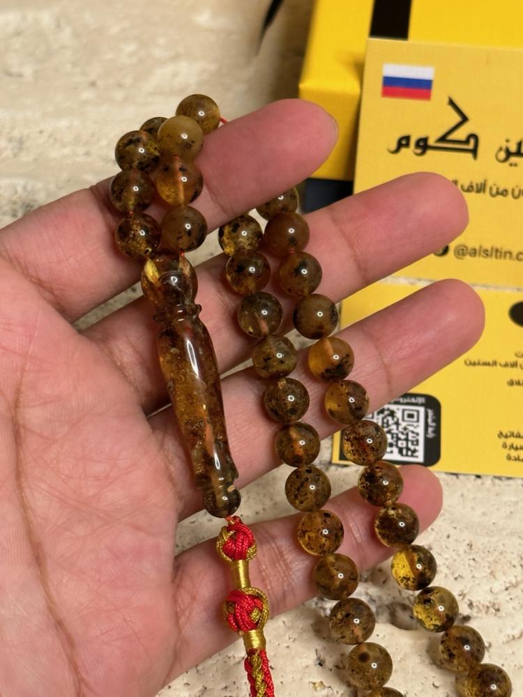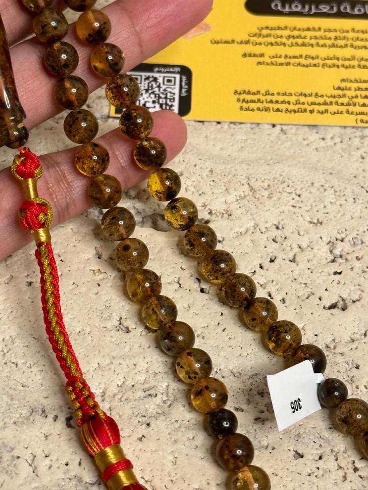 الكهرمان حجر عضوي ومن ميزته انه يكون خفيف الوزن واخف من اي سبحة ممكن تشوفه وصوت الخرز رنان يشبه صوت القزاز