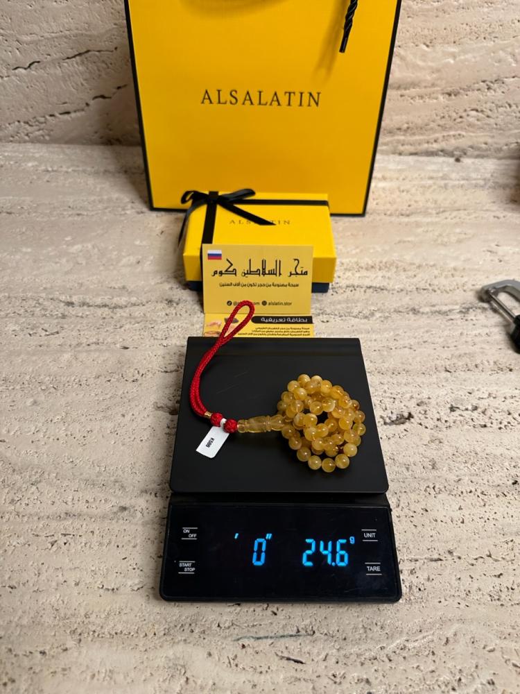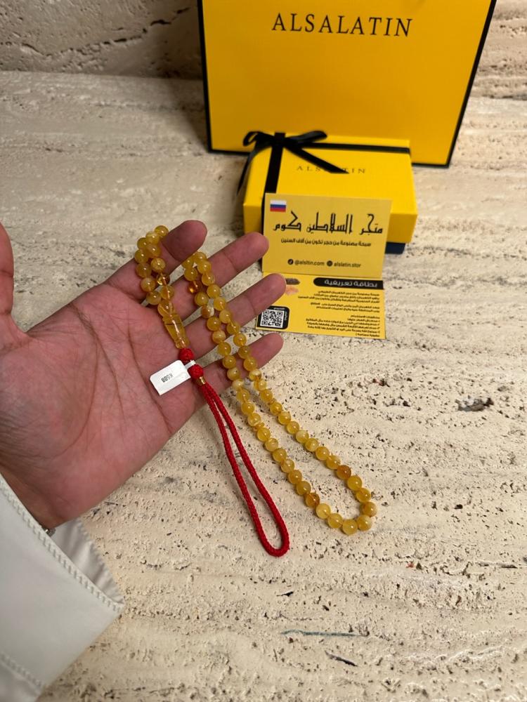 الكهرمان حجر عضوي ومن ميزته انه يكون خفيف الوزن واخف من اي سبحة ممكن تشوفه وصوت الخرز رنان يشبه صوت القزاز