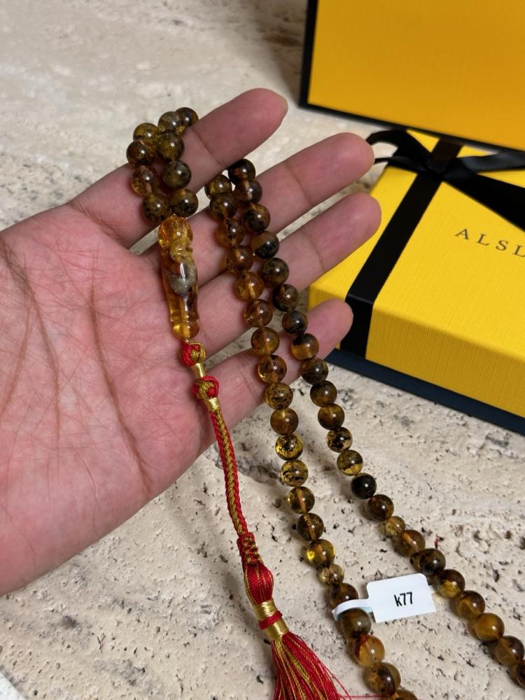 بعض الخرز او الشاهد قد يكون فيه شوائب ملموسه وهذا طبيعة الكهرمان الشوائب الطبيعية