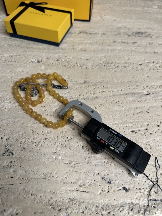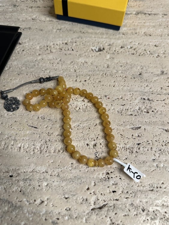 بعض الخرز او الشاهد قد يكون فيه شوائب ملموسه وهذا طبيعة الكهرمان الشوائب الطبيعية
