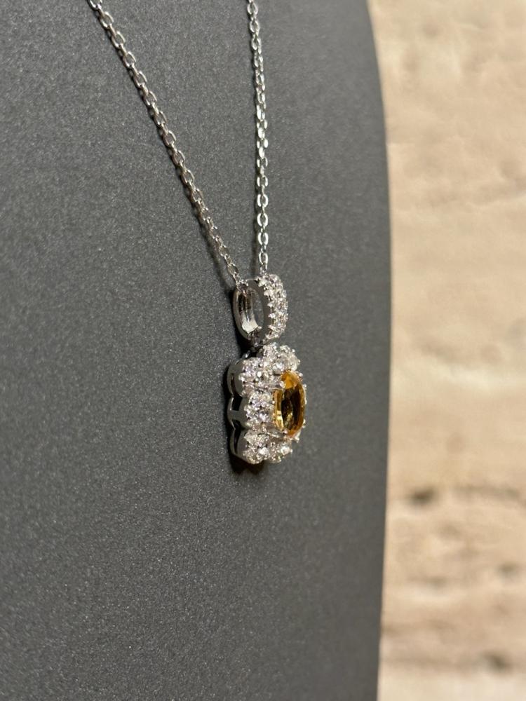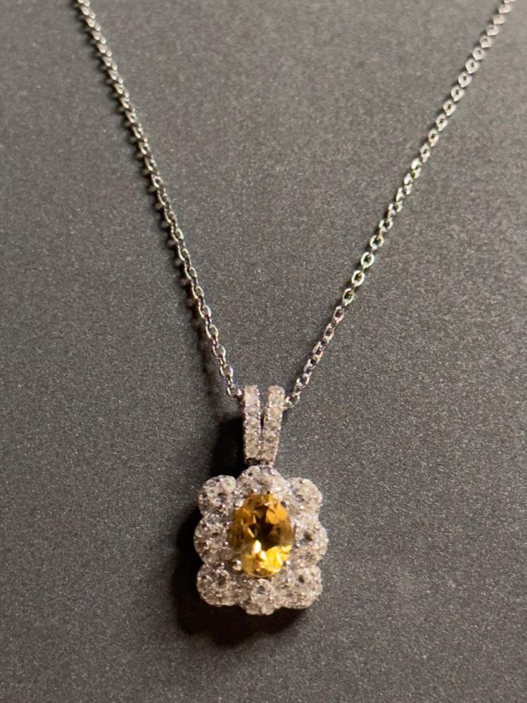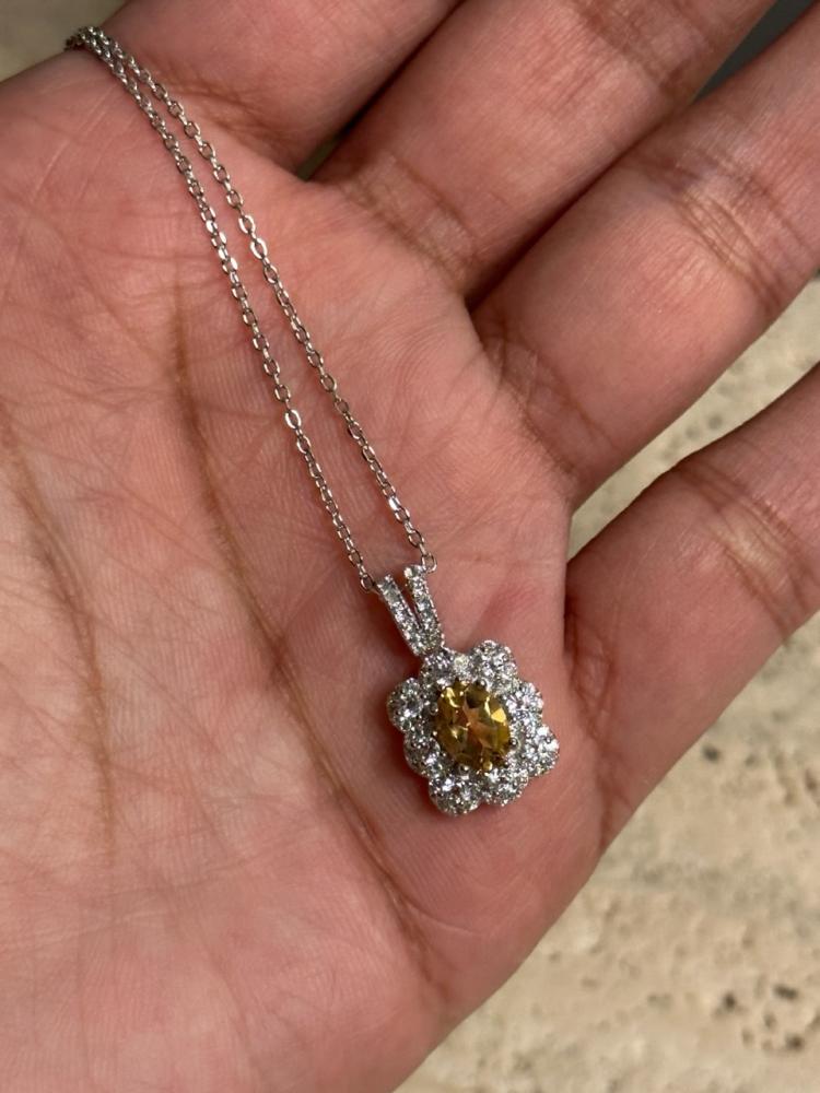 عقد فضه مرصع بحجر التوباز الطبيعي عيار 925