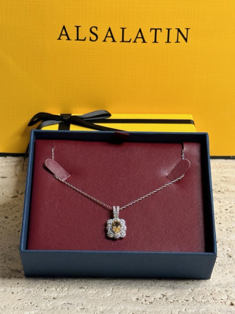 حجر توباز طبيعي: يتميز بجماله الفريد وألوانه البراقة التي تتناسب مع جميع المناسبات، مما يضفي على العقد طابعًا من الفخامة والتميز.
